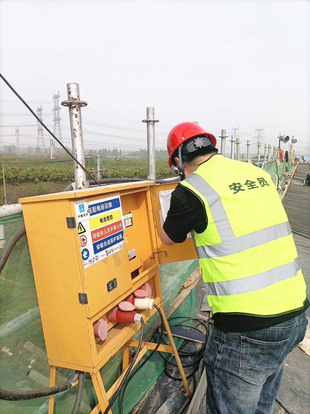 圖:孫錦逸在現(xiàn)場檢查安全用電情況