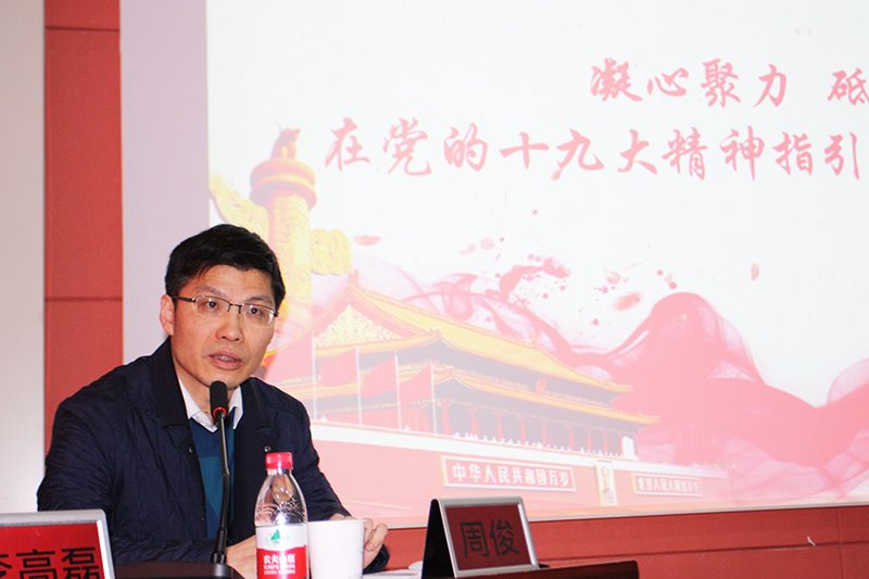 周俊主要從六個方面對黨的十九大精神進行全面深刻解讀:一是要深入理解把握黨的十九大68字主題和主要成果;二是要深刻領會習近平新時代中國特色社會主義思想;三是要深刻理解決勝全面建成小康社會和實現(xiàn)社會主義現(xiàn)代化的戰(zhàn)略部署;四是要全面貫徹落實國企黨建新要求;五是要把握時代發(fā)展新機遇;六是要勇?lián)鷩蟾母锇l(fā)展新使命。黨課內(nèi)容豐富、旗幟鮮明、思想深刻。