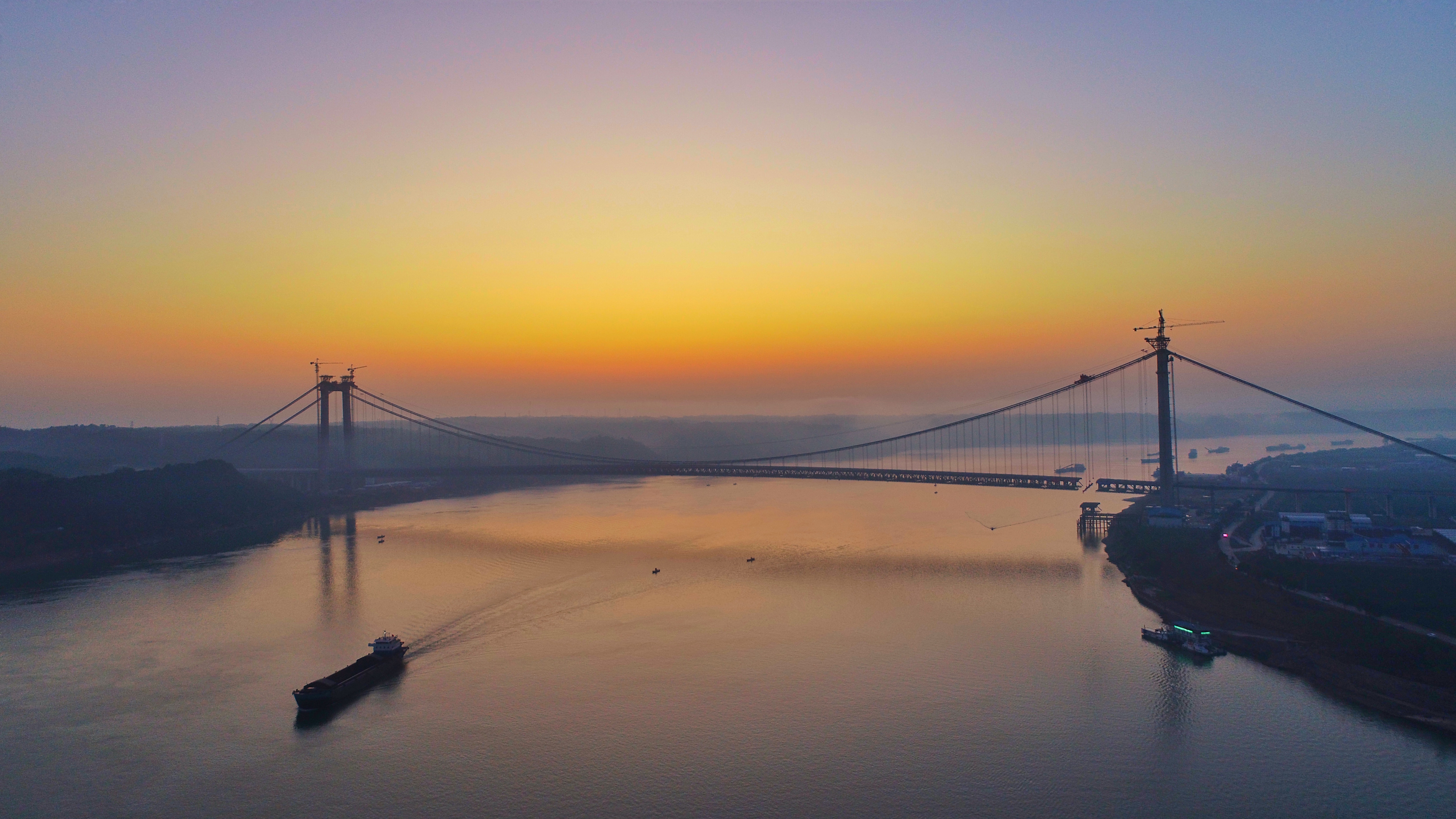 宜都長江大橋,又稱“宜都長江公路大橋”,是位于中國湖北省宜昌市的一座公路雙塔單跨鋼桁梁懸索橋,跨越長江,連接北岸枝江市白洋鎮(zhèn)和南岸宜都市陸城街道,是呼北高速公路宜昌至張家界段的控制性工程,也是湖北省“753”骨架公路網(wǎng)中規(guī)劃“縱6”的重要組成部分。大橋北接保康至宜昌高速公路,南連宜昌至張家界高速公路湖南段。大橋全長2,670.5米,按雙向六車道高速公路標準建設,設計行車速度100公里/小時,宜都長江大橋為主跨1000m的單跨懸索橋,主纜邊跨跨度分別為276m和296.5m。全橋設兩根主纜,橫向間距為36m,吊索與主纜在一個豎直平面內(nèi)。大橋項目分兩個不同的標段,項目估算總投資約37.33億元人民幣,計劃建設工期為48個月。湖北路橋集團有限公司承建BY-2標的建設,2020年4月29月,大橋實現(xiàn)全線貫通。