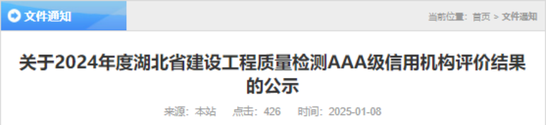 18日,湖北省建設工程質量安全協會發布了2024年度湖北省建設工程質量檢測AAA級信用機構評價結果,聯投湖北路橋瑞達科研檢測公司憑借優異的誠信建設和信用管理能力,榮獲最高級“AAA級”信用機構評價。