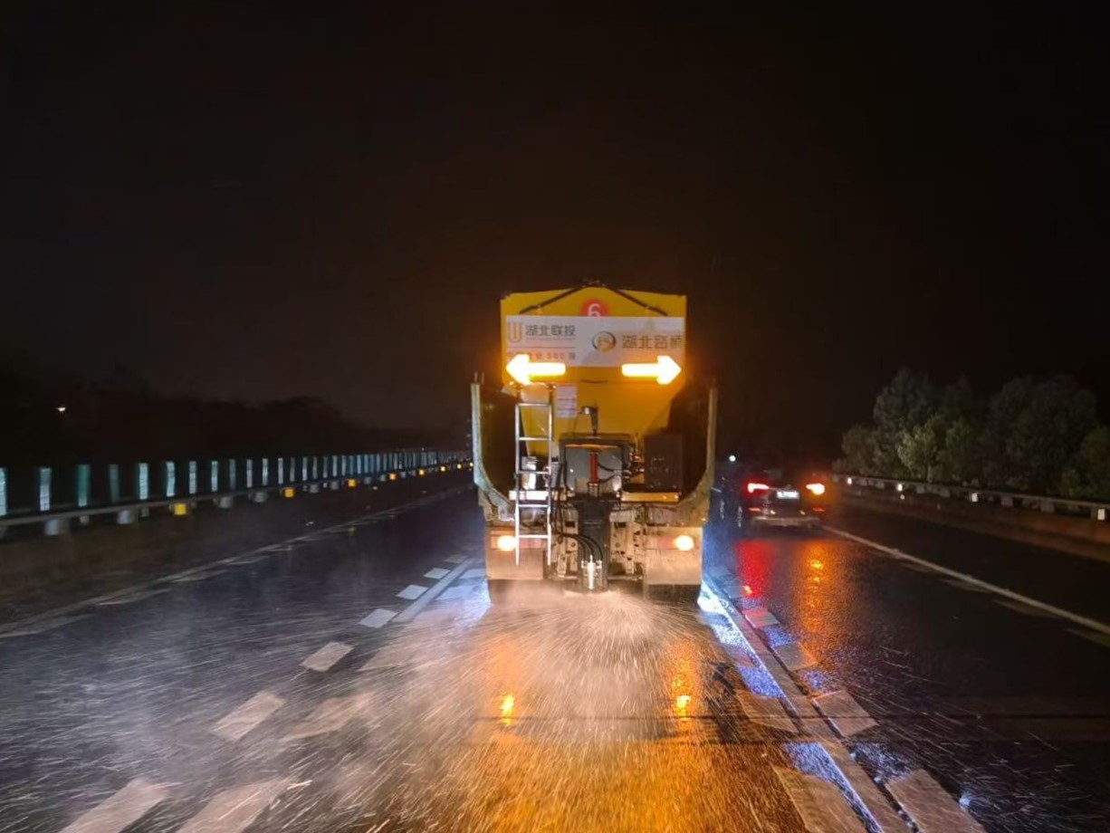 1月19日,寒潮突襲湖北,多地遭遇低溫雨雪天氣,轄內多條高速公路迅速出現路面結冰、積雪覆蓋等險情,嚴重威脅道路通行安全。關鍵時刻,聯投湖北路橋各項目聞雪而動、向險而行,立即啟動應急響應機制,工作人員頂風冒雪、晝夜鏖戰,以專業擔當打響抗冰除雪保暢攻堅戰,全力守護群眾出行平安路。