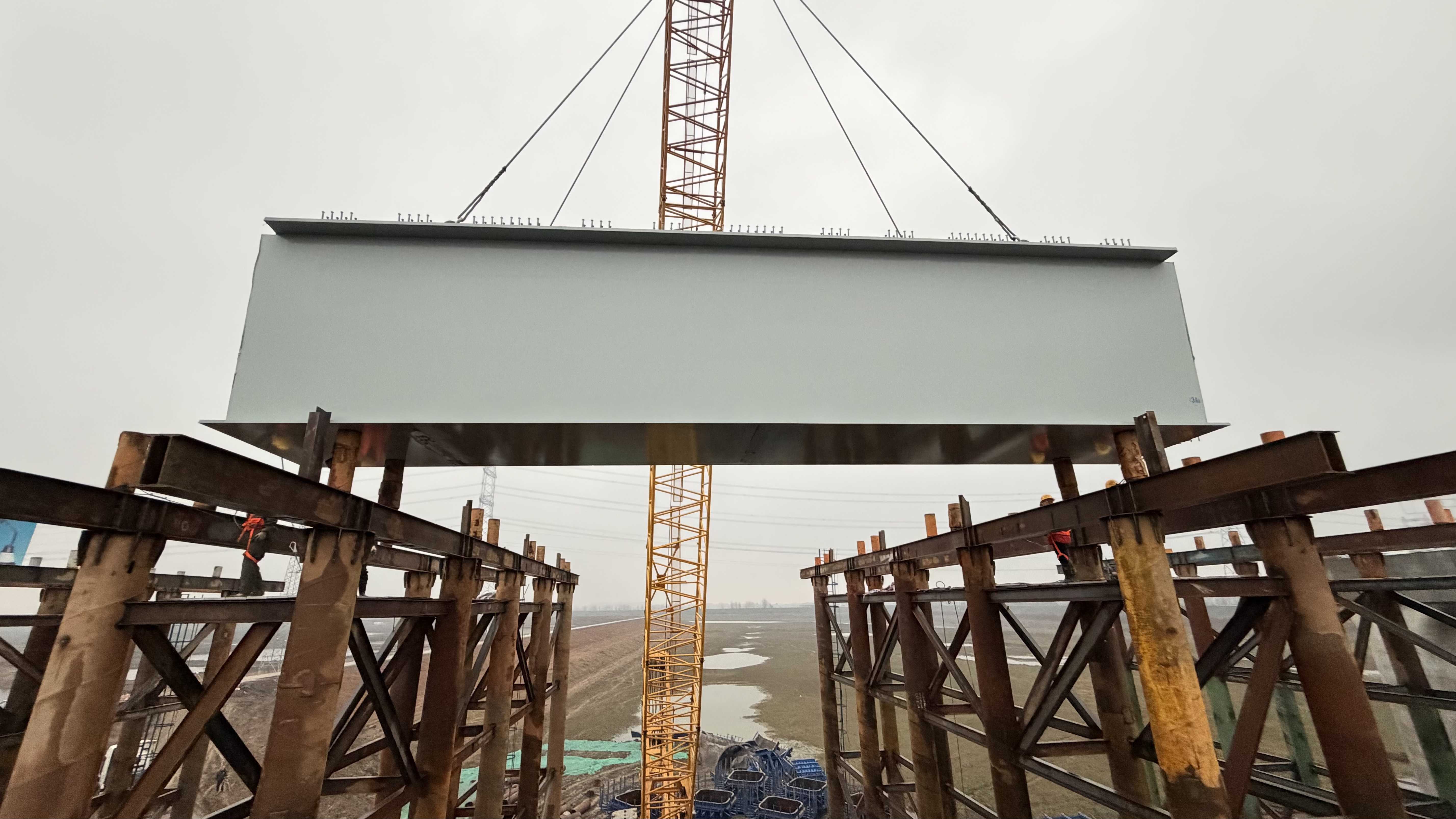 2月6日,隨著架梁吊機(jī)將首節(jié)鋼箱梁精準(zhǔn)吊裝到位,黃黃改擴(kuò)建三標(biāo)蘄河特大橋上部結(jié)構(gòu)施工正式拉開序幕。
